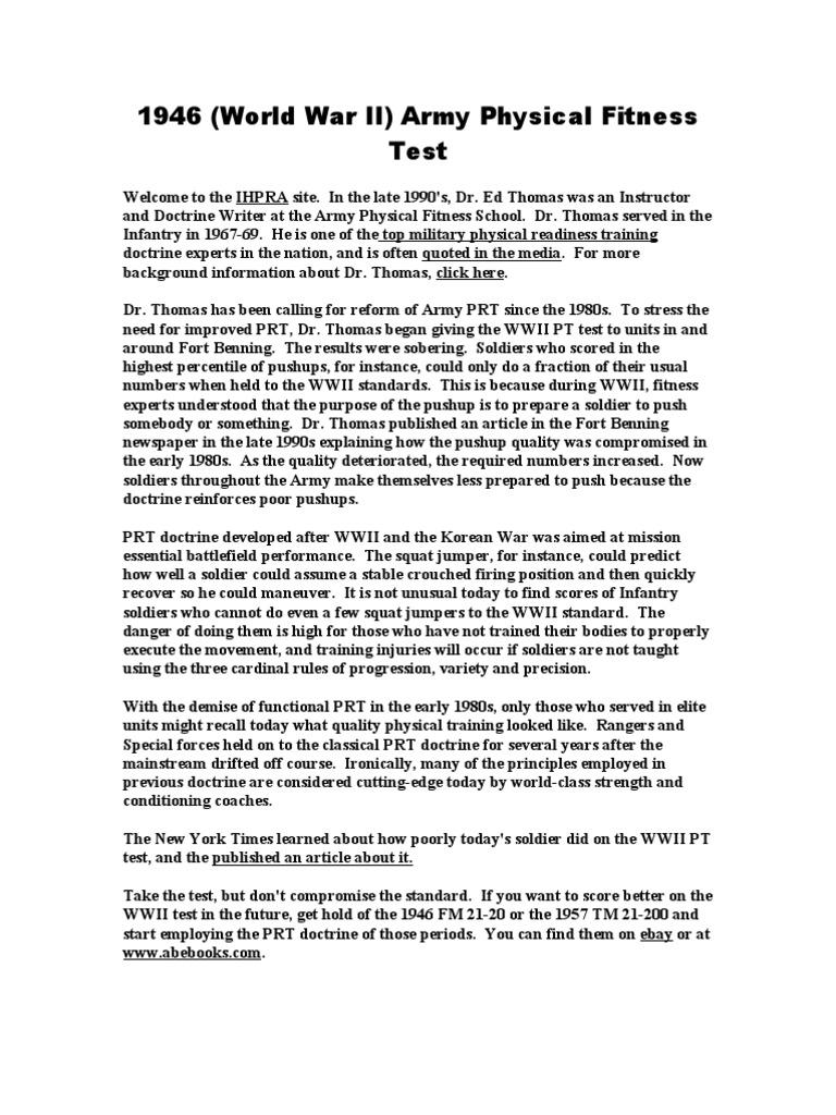 ww2 PFT PDF Physical Fitness Test (Assessment) - Find out the rules, scoring, and tips for each event: Is there anything i can do to prepare? The most important of these are. 1, 2026, and for the army reserve and national guard on. The army first introduced a formal fitness test to the troops in 1942. You should also read this: Kaiser Glucose Test Pregnancy