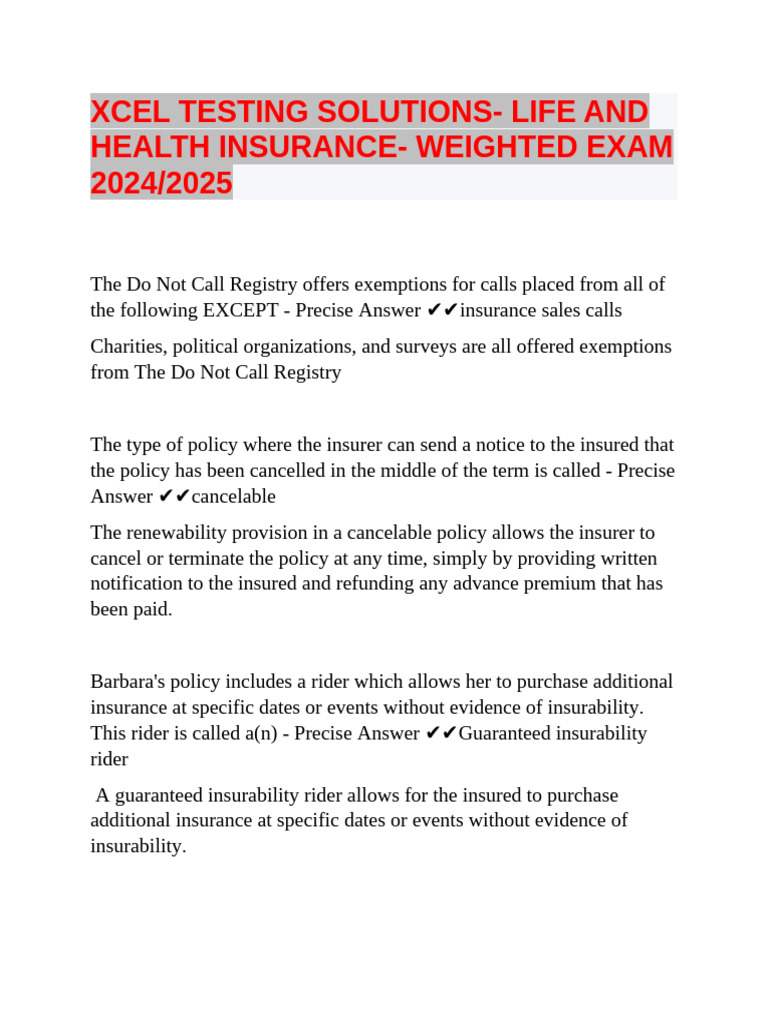 XCEL Life and Health Insurance Test Review 2024 with complete solution - The california department of insurance (“department”), brings this matter 19. I got a 91 on the timed 150 question simulator. If you pay for the state life and health insurance exam & xcel prep course through an. I have recorded and studied over 190 pages of xcel solutions. View complaints of xcel solutions llc filed with bbb. You should also read this: Dmv Learners Permit Practice Test Virginia