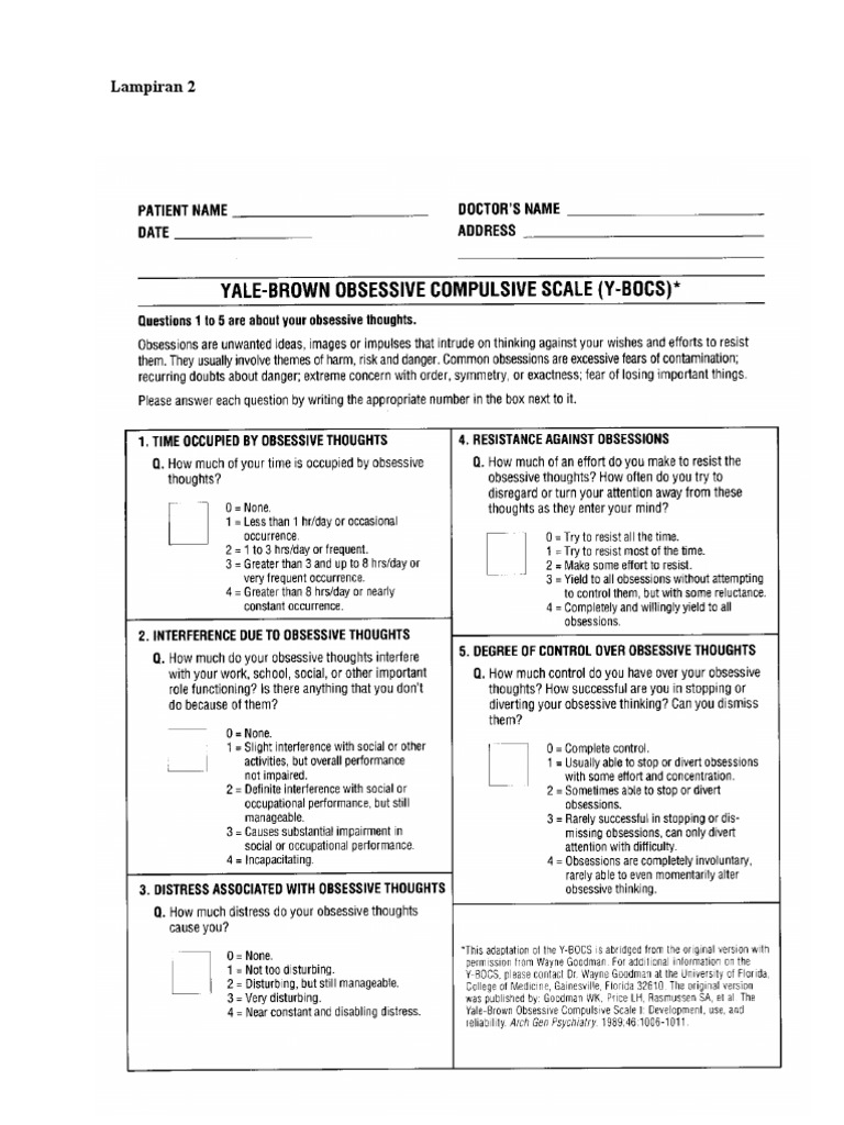 Yale Brown Obsessive Compulsive Scale 1 (3 Files Merged) Obsessive - This diagnostic tool combines a structured interview with a symptom. How much time do you spend on obsessive thoughts? This rating scale is designed to rate the severity and type of symptoms in patients with obsessive compulsive disorder (ocd). This rating scale is designed to rate the severity and type of symptoms in patients with obsessive compulsive disorder (ocd). Common. You should also read this: Kentucky Drivers Test Score Sheet